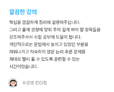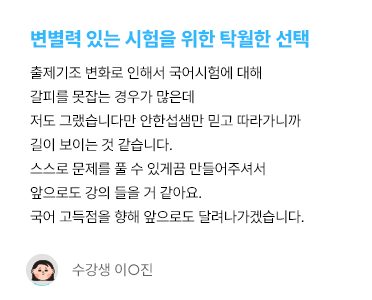 µ¥Àϸ® ±¹¾î - ¿¹»ó ±âÃâ ¹®Á¦¸¦ ÅëÇÑ º¹½À°ú ½ÇÀü °¨°¢ ¾÷±×·¹ÀÌµå ¹× À¯Áö°¡ ÇÊ¿äÇÑ ¼öÇè»ý¿¡°Ô Çʼö °ÁÂ- ½ÇÀü°¨°¢ À¯Áö¸¦ À§ÇÑ ¸ÅÀÏ ±¹¾î ½Ã¸®Áî·Î ±¹¾î Àü ¹üÀ§¸¦ ³À̵µº°·Î ¸ÅÀÏ ÇнÀ °¡´É