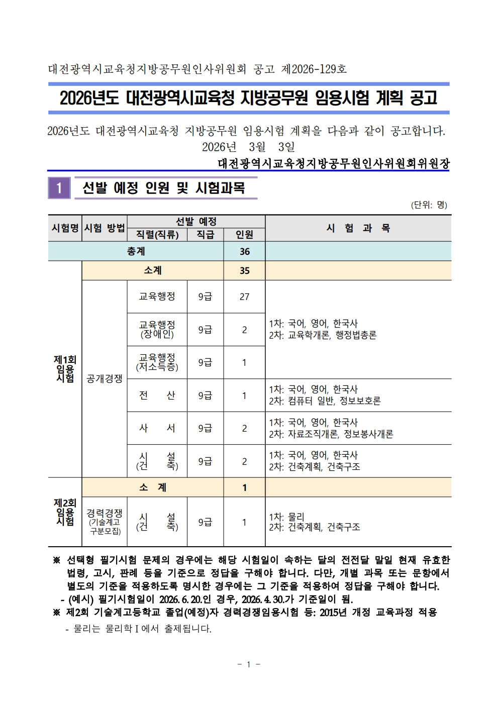[°ø°í¹®] 2026³âµµ ´ëÀü±¤¿ª½Ã±³À°Ã» Áö¹æ°ø¹«¿ø ÀÓ¿ë½ÃÇè °èȹ °ø°í¹®.pdf